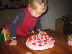 Gosse got his first lego and even more duplo and on the pic he just blew out the candles on his cake.